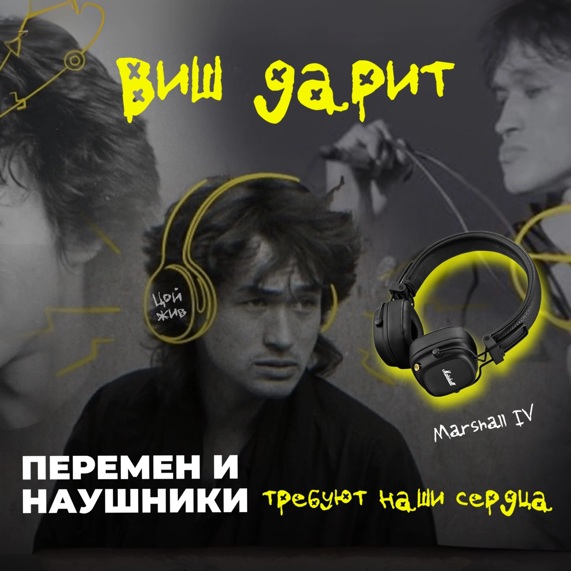 Выиграть можно не просто наушники, а наушники с гравировкой «Цой жив»! Уникальная вещица!